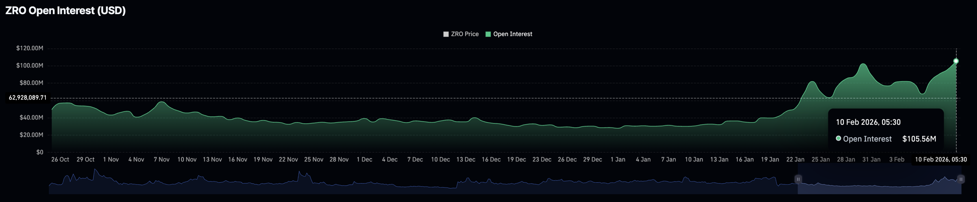 En el lado de los derivados, los datos de CoinGlass muestran un fuerte aumento en el interés abierto (OI) de los futuros de $ZRO, que subió a 105.56 millones de dólares el martes, el nivel más alto desde diciembre de 2024, subiendo desde los 95.78 millones de dólares del día anterior. Un aumento en el valor nocional de los contratos pendientes sugiere una entrada de capital o una mayor exposición al apalancamiento.