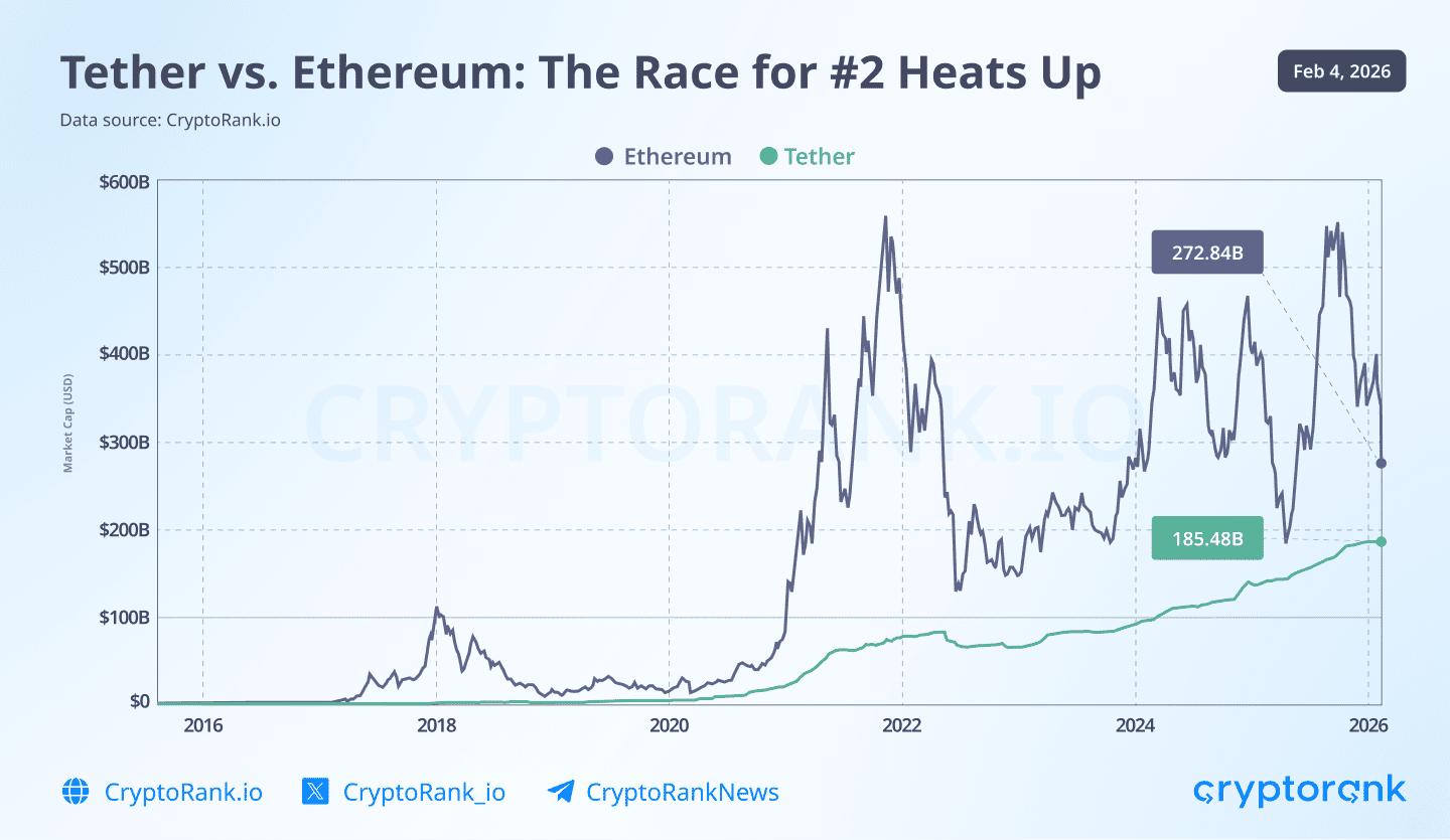 En este contexto, Tether podría superar a Ethereum en capitalización si continúa el impulso de las stablecoins y el sentimiento bajista persiste.