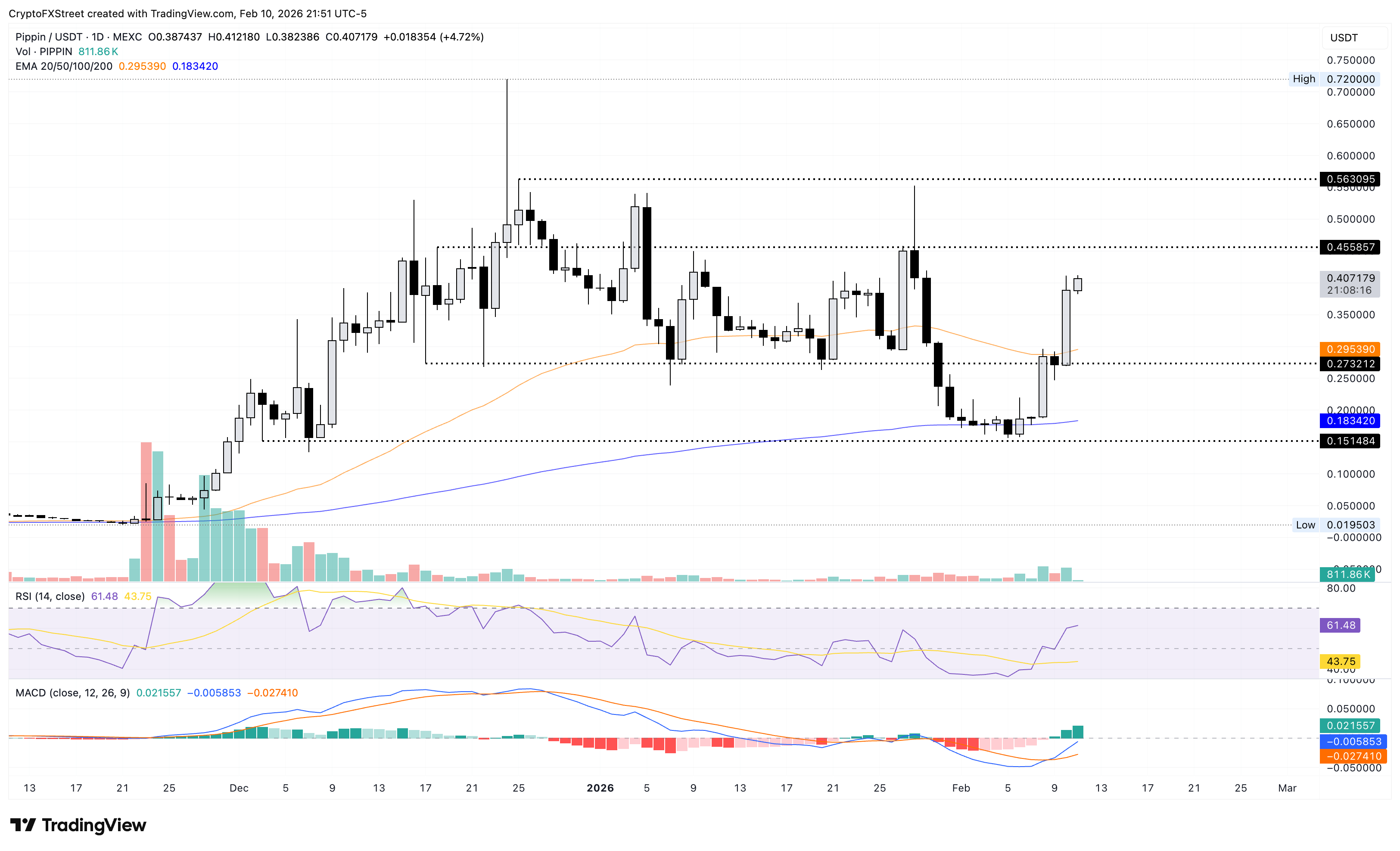 Sin embargo, una reversión en Pippin podría encontrar soporte en la EMA de 50 días en 0.2953$.