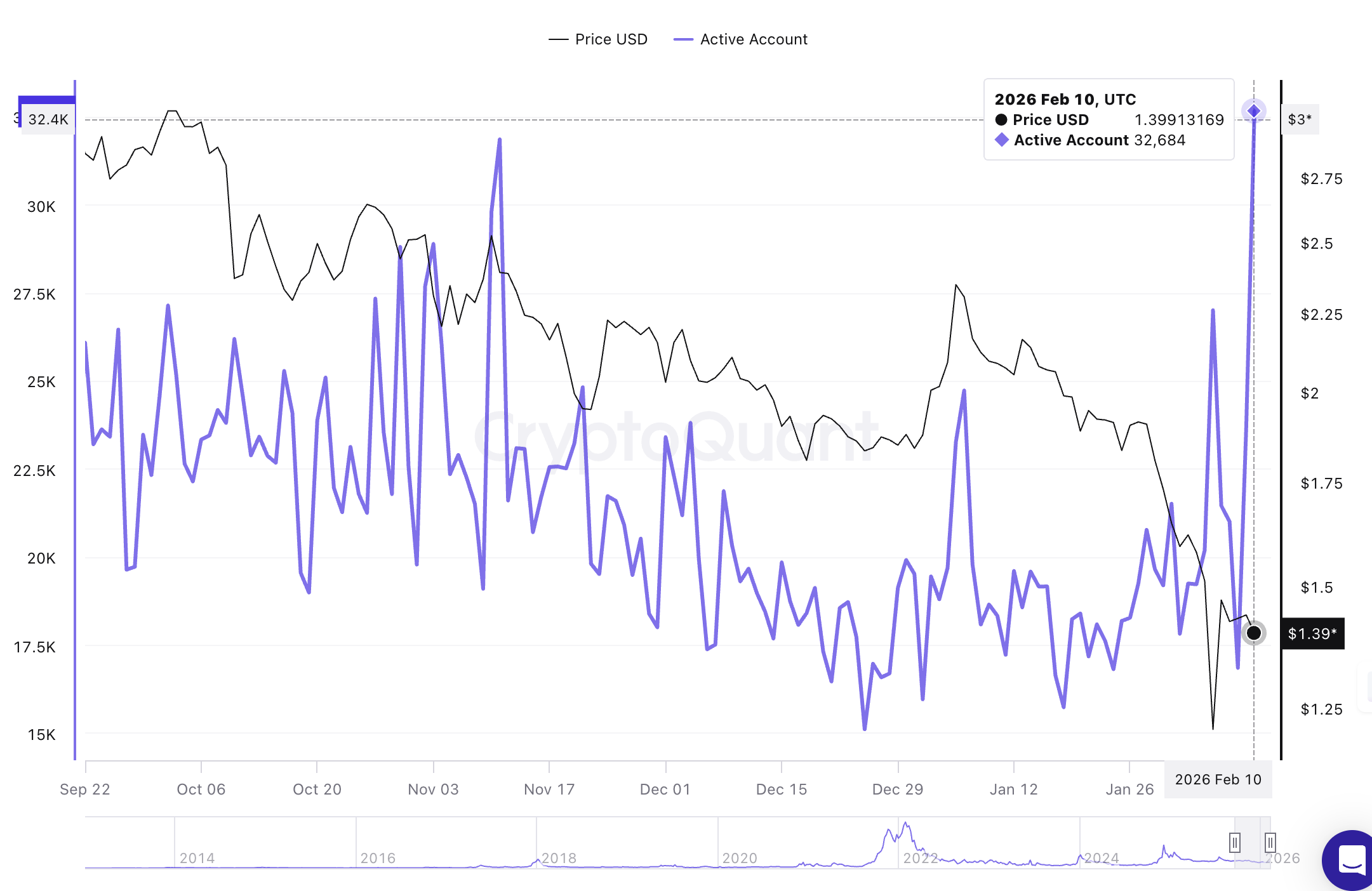 El $XRP Ledger (XRPL) ha registrado desde el lunes un aumento significativo en el número de direcciones activas que transaccionan en cadena. Según los datos de CryptoQuant, la métrica de Direcciones Activas casi se duplicó de aproximadamente 17.000 direcciones el domingo a 32.700 el miércoles.