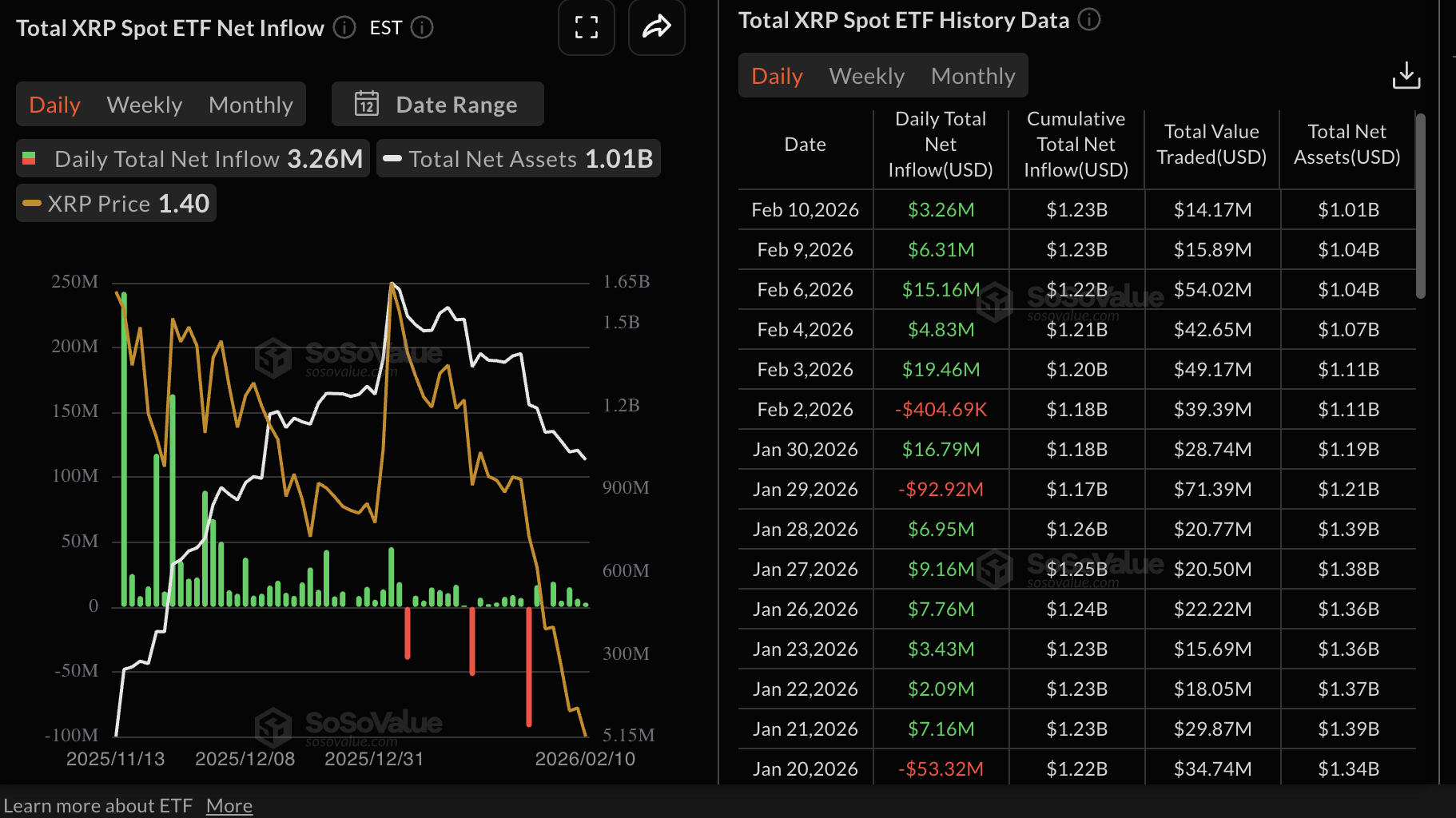 Mientras tanto, el interés institucional en $XRP se mantiene estable, aunque con leves entradas en ETFs de $XRP al contado. Durante cinco días consecutivos, los ETFs de $XRP listados en EE.UU. han registrado entradas, con 3.26 millones de dólares depositados el martes.