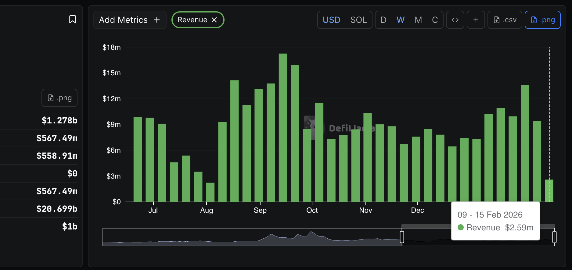 Los ingresos de la plataforma de Pump.fun, por otro lado, han disminuido a 9.4 millones de dólares para la semana que finaliza el domingo, desde 13.6 millones de dólares, lo que indica que la actividad de comercio de monedas meme se ha ralentizado, reflejando los vientos en contra en el mercado de criptomonedas más amplio.