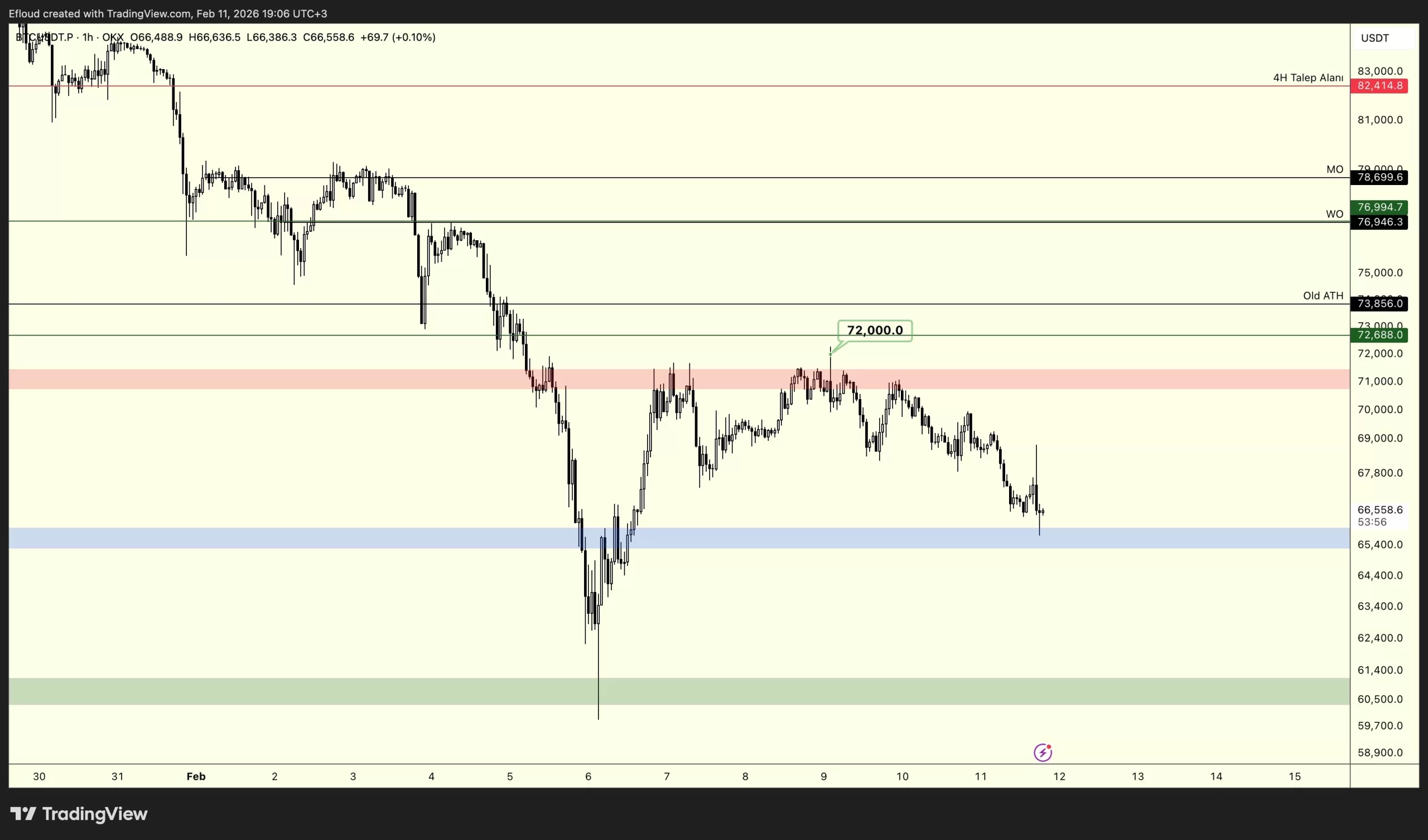 El popular analista de criptomonedas turco Efloud destacó oportunidades de cortos para $BTC en el corto plazo, una predicción que ha estado alineada bien con la acción del mercado. Bitcoin rebotó brevemente pero no pudo avanzar más allá de los $72,000, lo que envalentonó a los vendedores en corto. El mercado ahora se centra en dos niveles decisivos: $57,000 y $72,000. Se espera que una ruptura en cualquier dirección defina el próximo movimiento importante, ya sea una recuperación o incluso caídas más profundas.