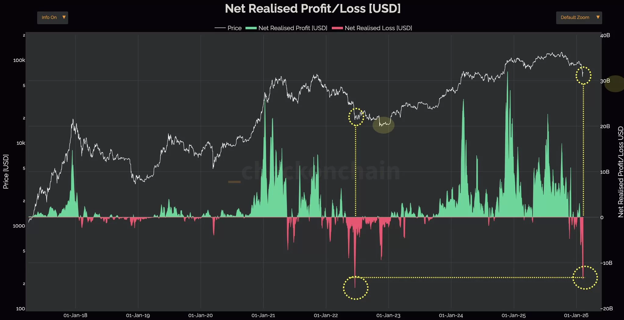 Los recientes métricos en cadena indican que las pérdidas realizadas para los titulares de Bitcoin están reflejando los días más oscuros del mercado bajista de 2022.