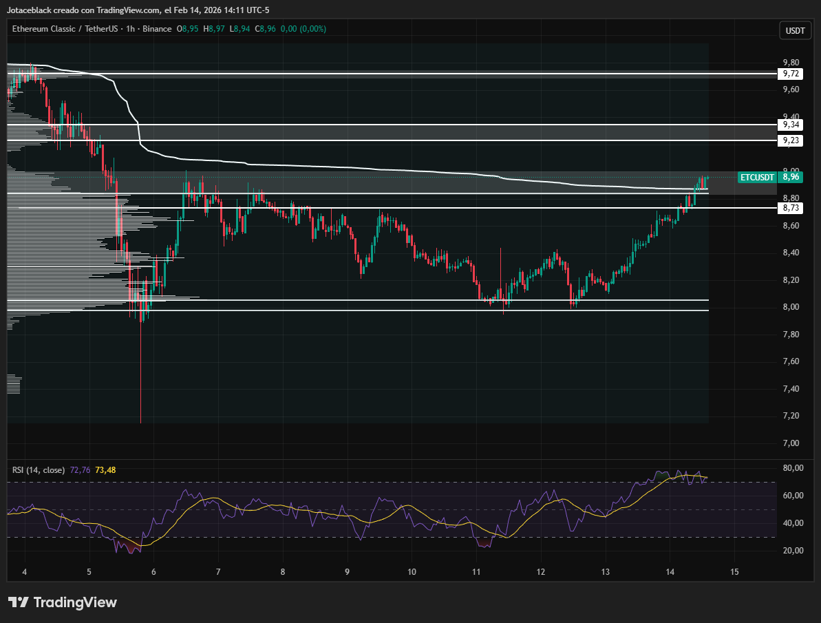 Por el contrario, si el nivel de $8,73 logra sostenerse y Ethereum Classic recupera impulso comprador, el objetivo en $9,34 volvería a cobrar protagonismo.