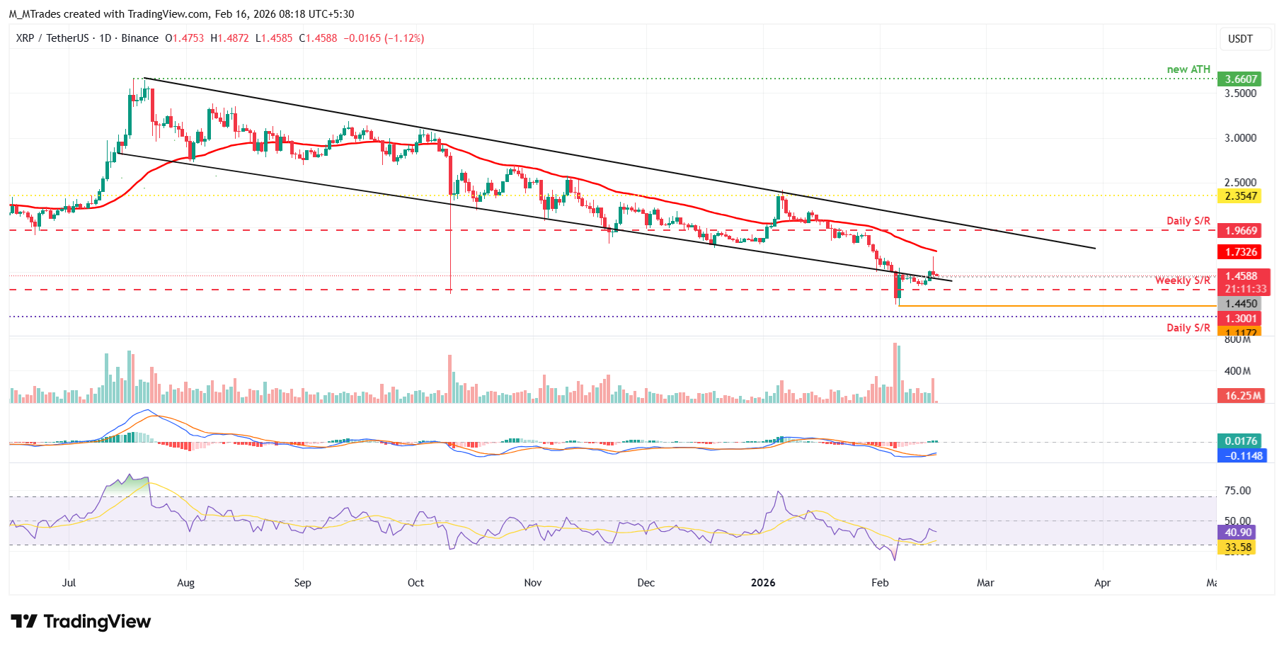Por otro lado, si $XRP cae por debajo de la línea de tendencia inferior, podría extender la caída hacia el soporte semanal en 1.30$.