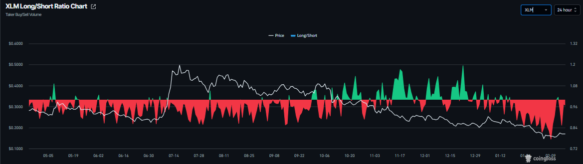 Además, la relación larga-corta de CoinGlass para $XLM se sitúa en 0.96 el martes. La relación por debajo de uno sugiere que más operadores están apostando a que el precio de Stellar caerá.
