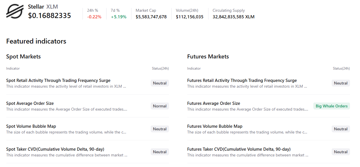 A pesar del sentimiento bajista en el mercado de derivados, los datos de resumen de CryptoQuant de $XLM indican condiciones neutrales con signos tempranos de alcismo. La actividad en los mercados al contado y de futuros sigue siendo en gran medida equilibrada, reflejando indecisión entre los operadores. Sin embargo, la presencia de grandes órdenes de ballenas en el mercado de futuros sugiere una perspectiva ligeramente optimista para $XLM.