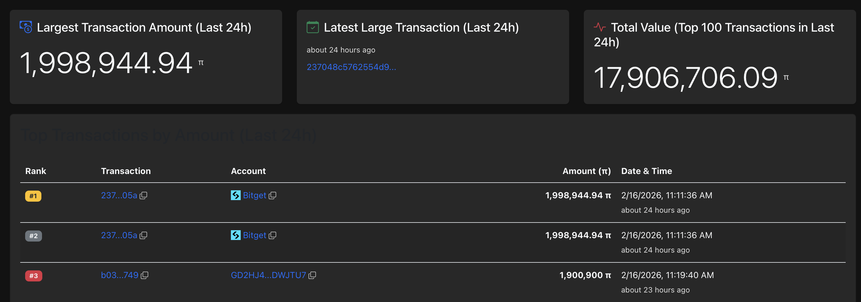 Los datos de Piscan muestran dos retiros de gran valor de 1.99 millones de tokens PI cada uno en las últimas 24 horas, reflejando una mayor demanda por parte de las ballenas. El repentino aumento en la actividad de las ballenas se alinea con el próximo primer aniversario del lanzamiento de la red abierta el viernes (20 de febrero).