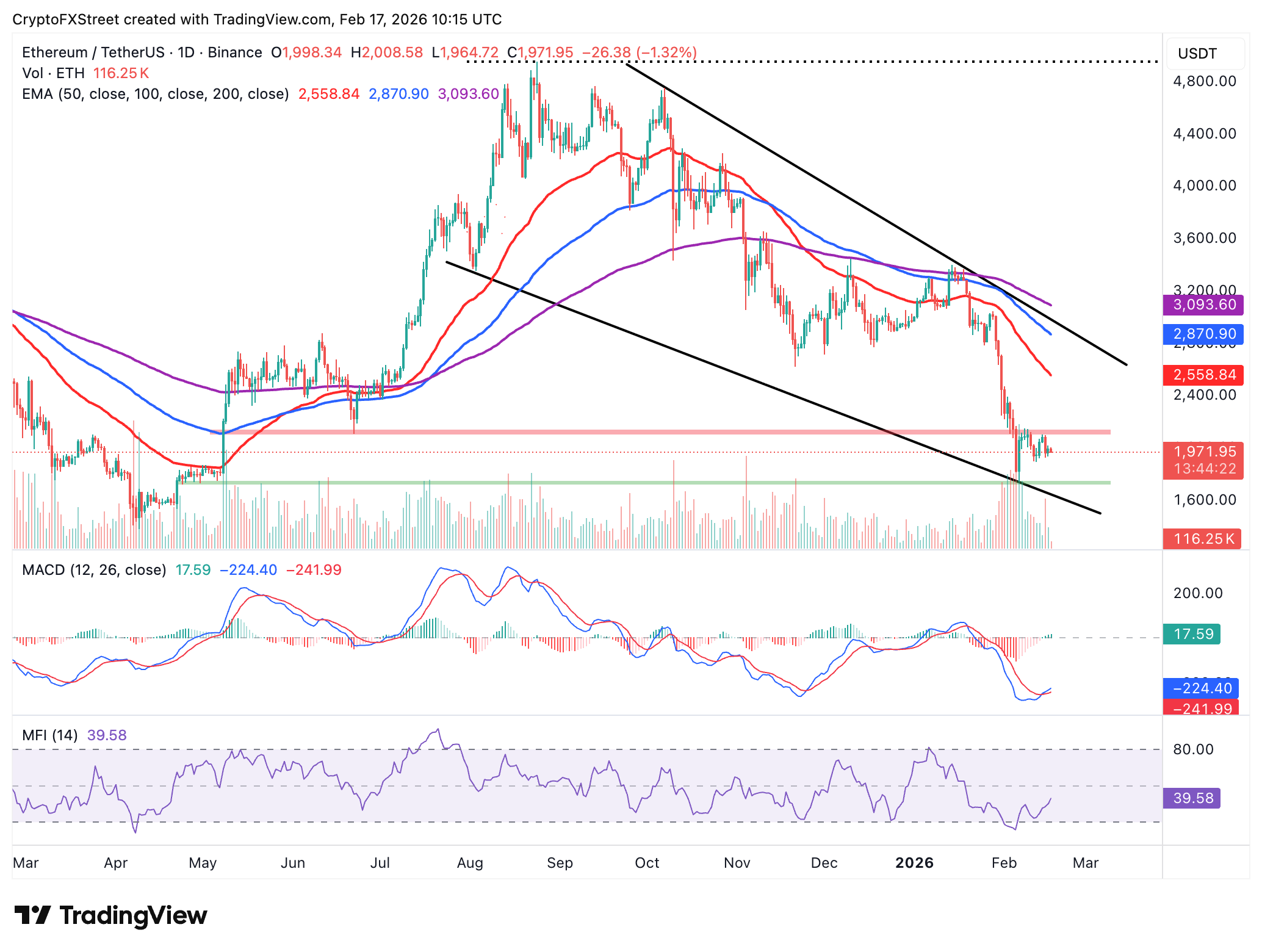 La fuerte caída en la EMA de 50 días en 2.559$, la EMA de 100 días en 2.871$ y la EMA de 200 días en 3.094$ se alinean con una estructura técnica deteriorada. Si $ETH cae por debajo del mínimo del lunes en 1.937$, los vendedores podrían apretar su control, ya que las probabilidades de una caída prolongada hacia el nivel de soporte de 1.747$ aumentarían.