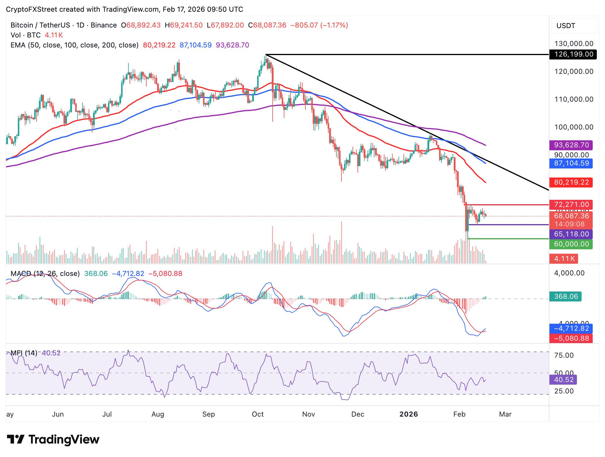 El Bitcoin se mantiene ligeramente por encima de 68.000$ después de que el rebote de la semana pasada se debilitara alrededor del umbral de 70.000$. Su posición por debajo de la media móvil exponencial (EMA) de 50 días en 80.219$, la EMA de 100 días en 87.105$ y la EMA de 200 días en 93.629$ sugiere una estructura técnica deteriorada.