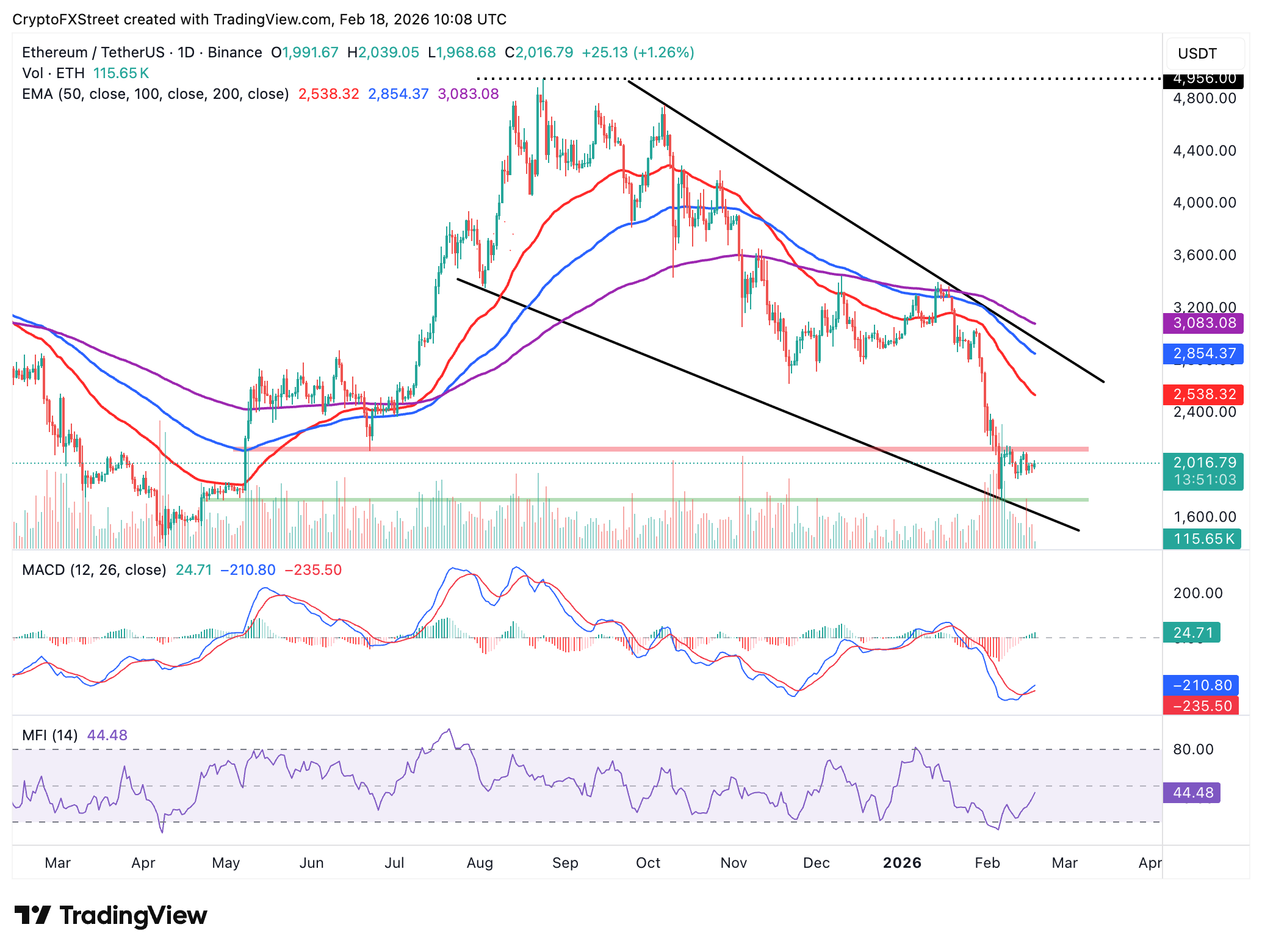 Ethereum se está negociando ligeramente por encima del máximo del día anterior de 2.025$, apoyado por una perspectiva técnica en fortalecimiento como se observa en el gráfico diario.