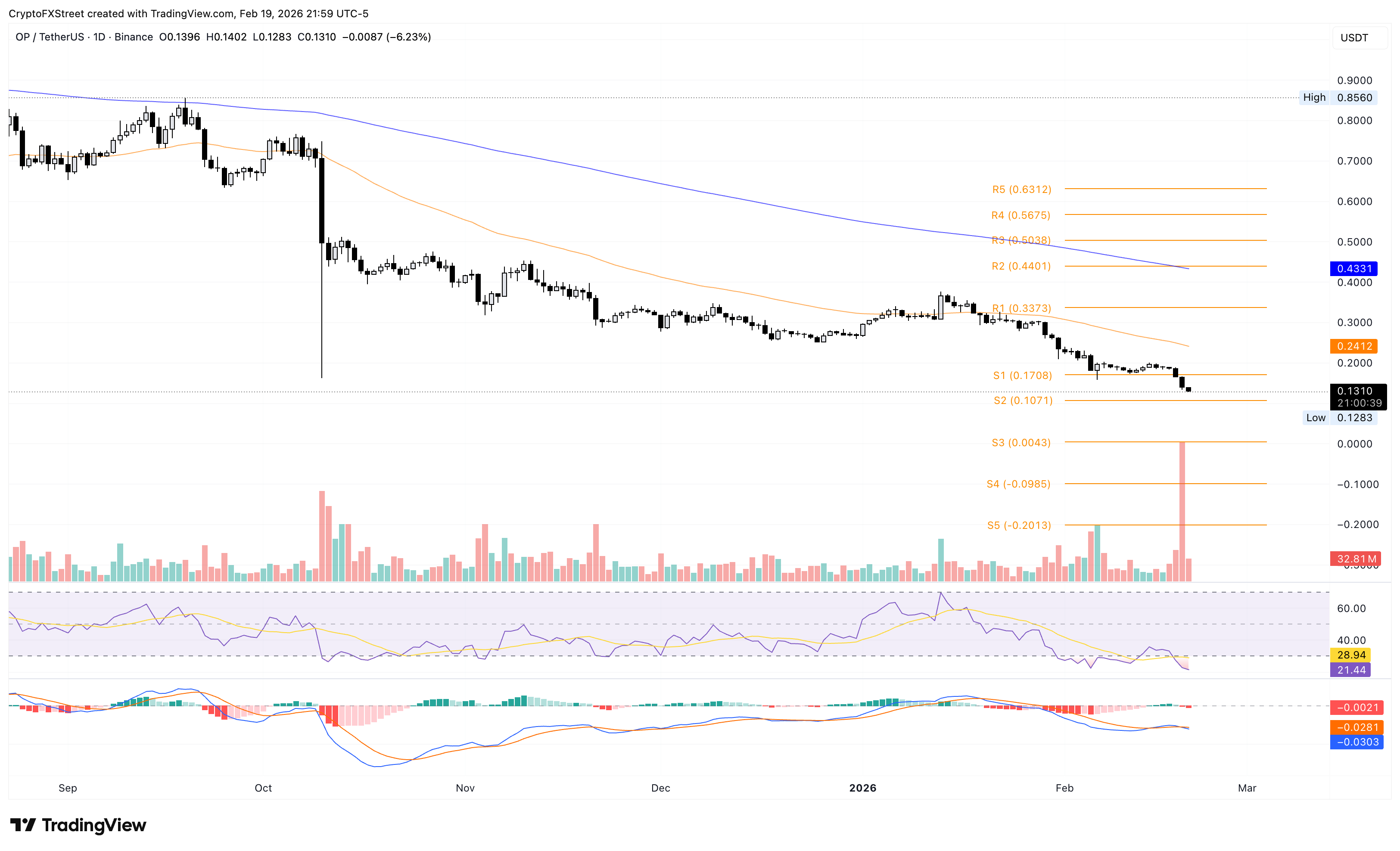 Una posible recuperación en el token OP podría volver a probar el punto de pivote S1 en 0.1708$.