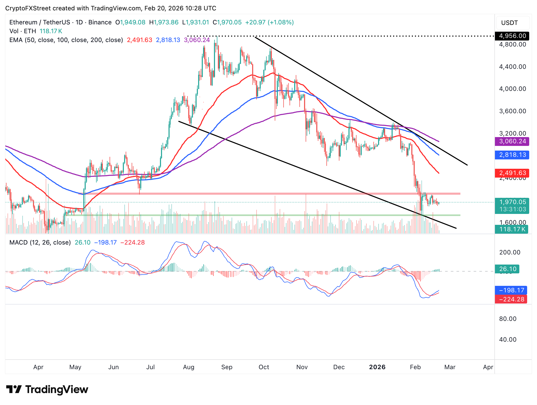 Ethereum está subiendo hacia la resistencia psicológica en 2.000$, mientras el impulso alcista se construye desde un mínimo intradía de 1.932$. A pesar de que el token líder de contratos inteligentes cotiza lateralmente en un rango con soporte alrededor de 1.900$ y resistencia en el rango inferior de 2.000$, el indicador MACD se mantiene por encima de su línea de señal en el gráfico diario, sugiriendo que el impulso alcista se está acumulando. Las barras del histograma verde se expanden por encima de la línea cero del MACD, lo que lleva a los inversores a aumentar su exposición.