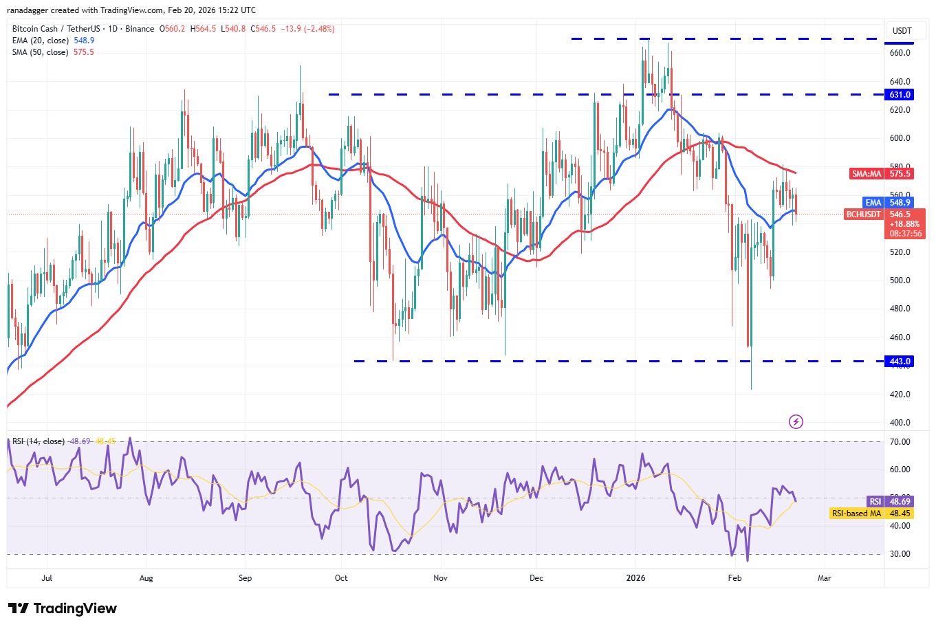 Bitcoin Cash ($BCH) ha caído por debajo de la EMA de 20 días (548 dólares), lo que indica que los bajistas están intentando tomar el control.
