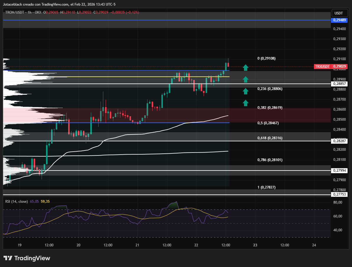 En nuestro análisis previo de TRON señalamos un indicador que proyectaba un escenario alcista para el activo, con un objetivo en torno a $0,2886. Ese nivel fue alcanzado conforme a lo previsto.