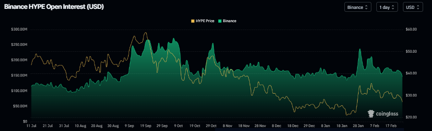 El interés abierto (OI) de futuros de Hyperliquid en el intercambio de Binance cae a 146,15 millones de dólares el lunes, habiendo disminuido de manera constante desde finales de enero y acercándose al nivel del 21 de enero de 135 millones de dólares. Esta caída en el OI refleja una disminución en la participación de los inversores y proyecta una perspectiva bajista.