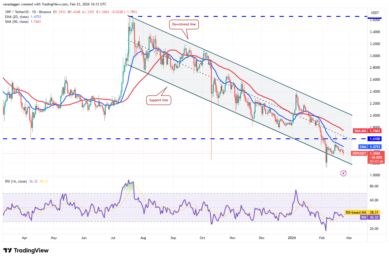 La EMA de 20 días con pendiente descendente y el RSI en territorio negativo indican que los bajistas mantienen el control. Si la línea de soporte cede, el par $XRP/$USDT podría volver a probar el mínimo del 6 de febrero de 1,11 dólares. Una ruptura y cierre por debajo del nivel de 1,11 dólares podría extender la caída hasta el soporte psicológico de 1 dólar.