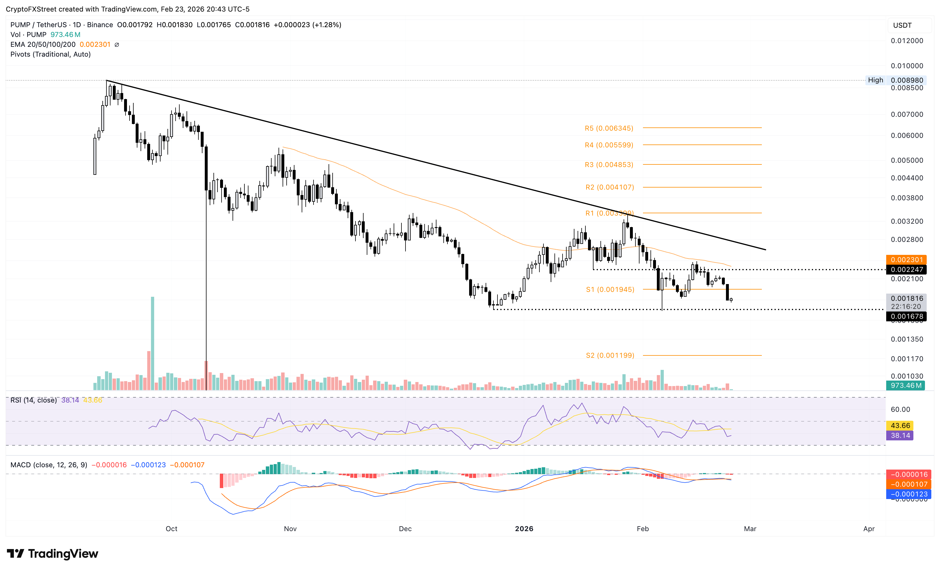 Si $PUMP recupera el punto de pivote S1 en 0.001945$, podría probar la EMA de 50 días en 0.002300$.