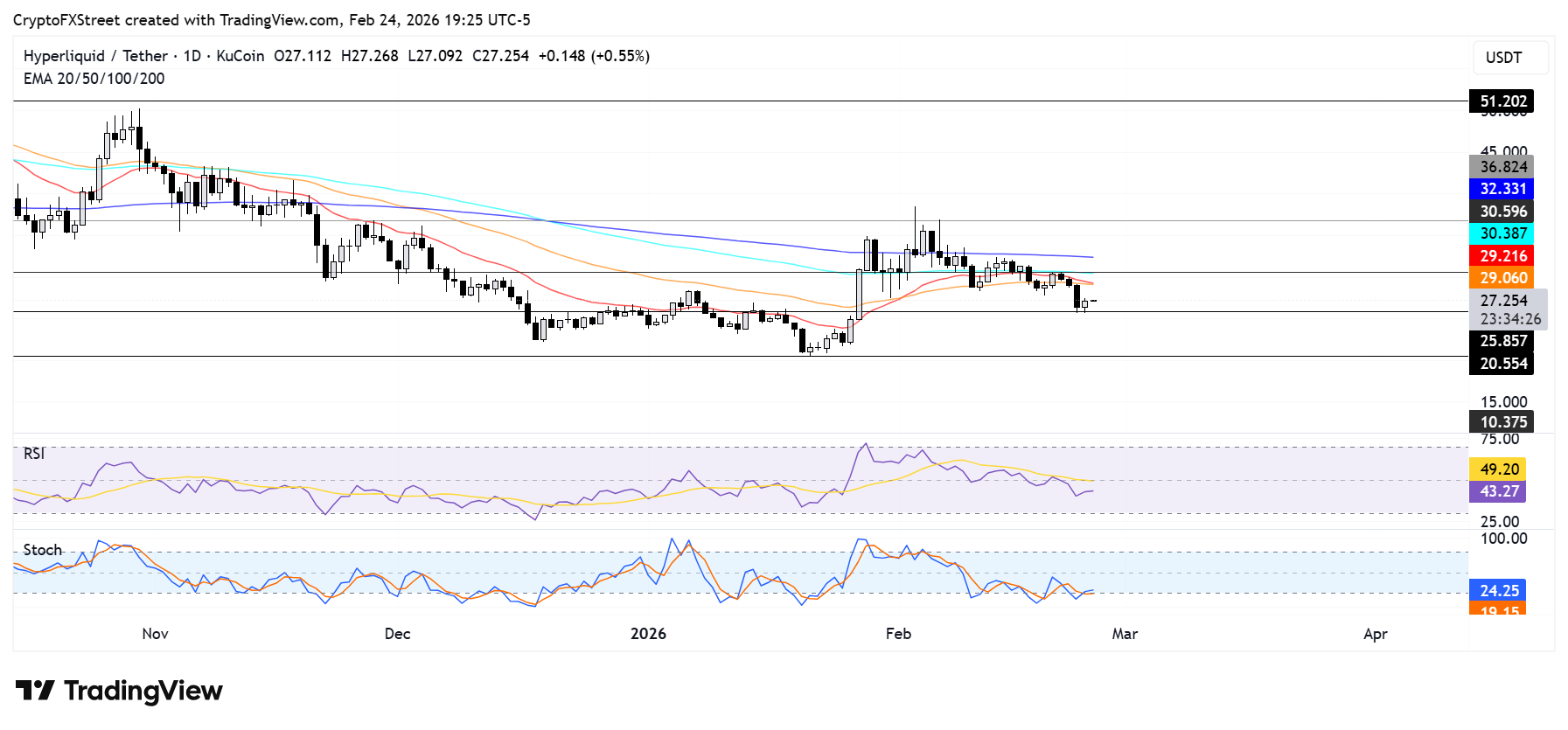 $HYPE debe cerrar por encima de la convergencia de EMA y la resistencia de 30.5$ para recuperar fuerza