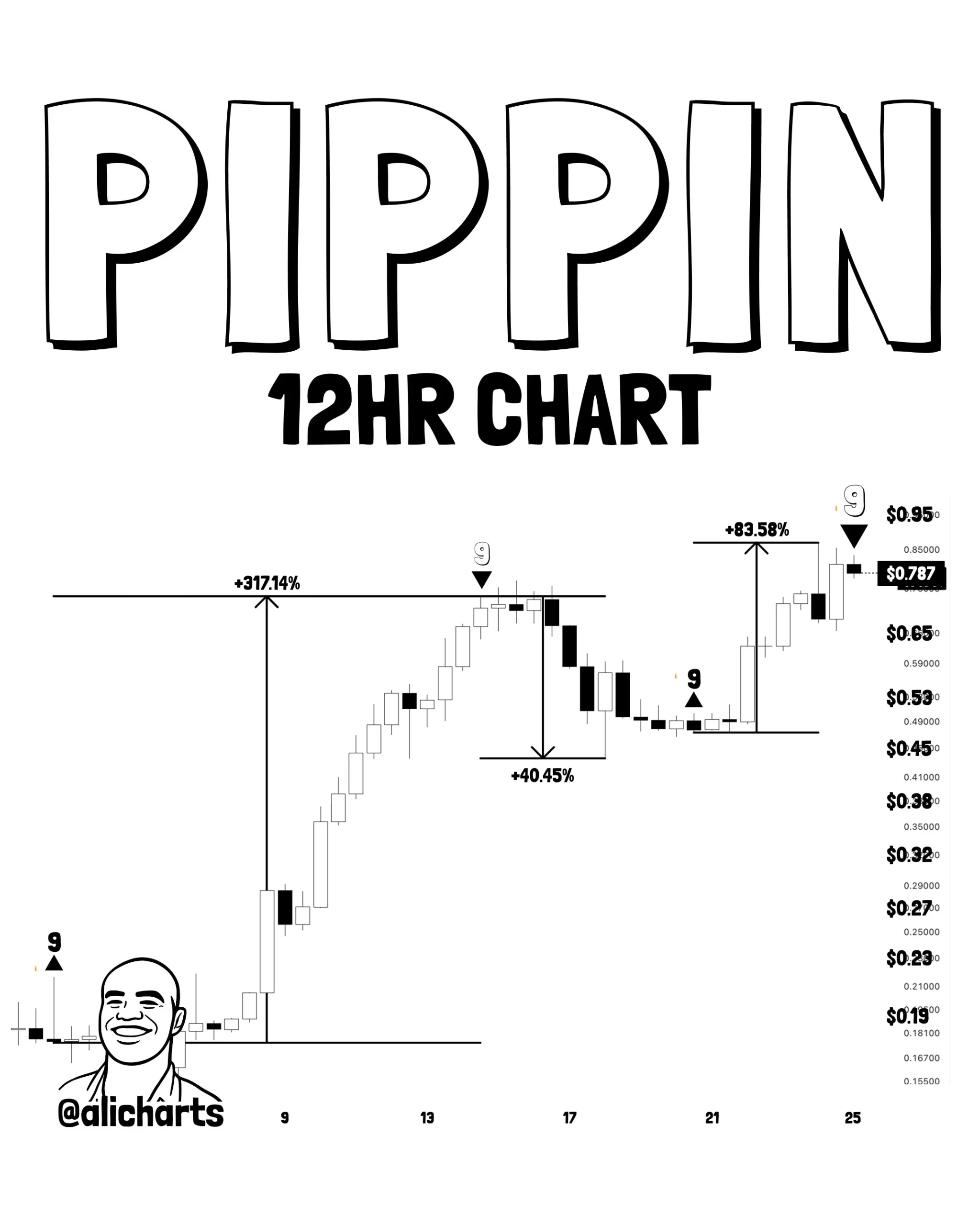 $PIPPIN se ha destacado recientemente como el intérprete más impresionante entre las 100 principales criptomonedas, reclamando el liderazgo en ganancias diarias. El estratega cripto Ali Martinez destacó una señal clave de TD Sequential, indicando que una posible venta masiva podría ser inminente. Si esta señal resulta precisa, $PIPPIN podría retroceder a $0.65 o menos. Sin embargo, el impulso ascendente de Bitcoin ha fomentado un mayor apetito por el riesgo entre los altcoins, lo que puede desbaratar las expectativas bajistas a corto plazo para $PIPPIN.