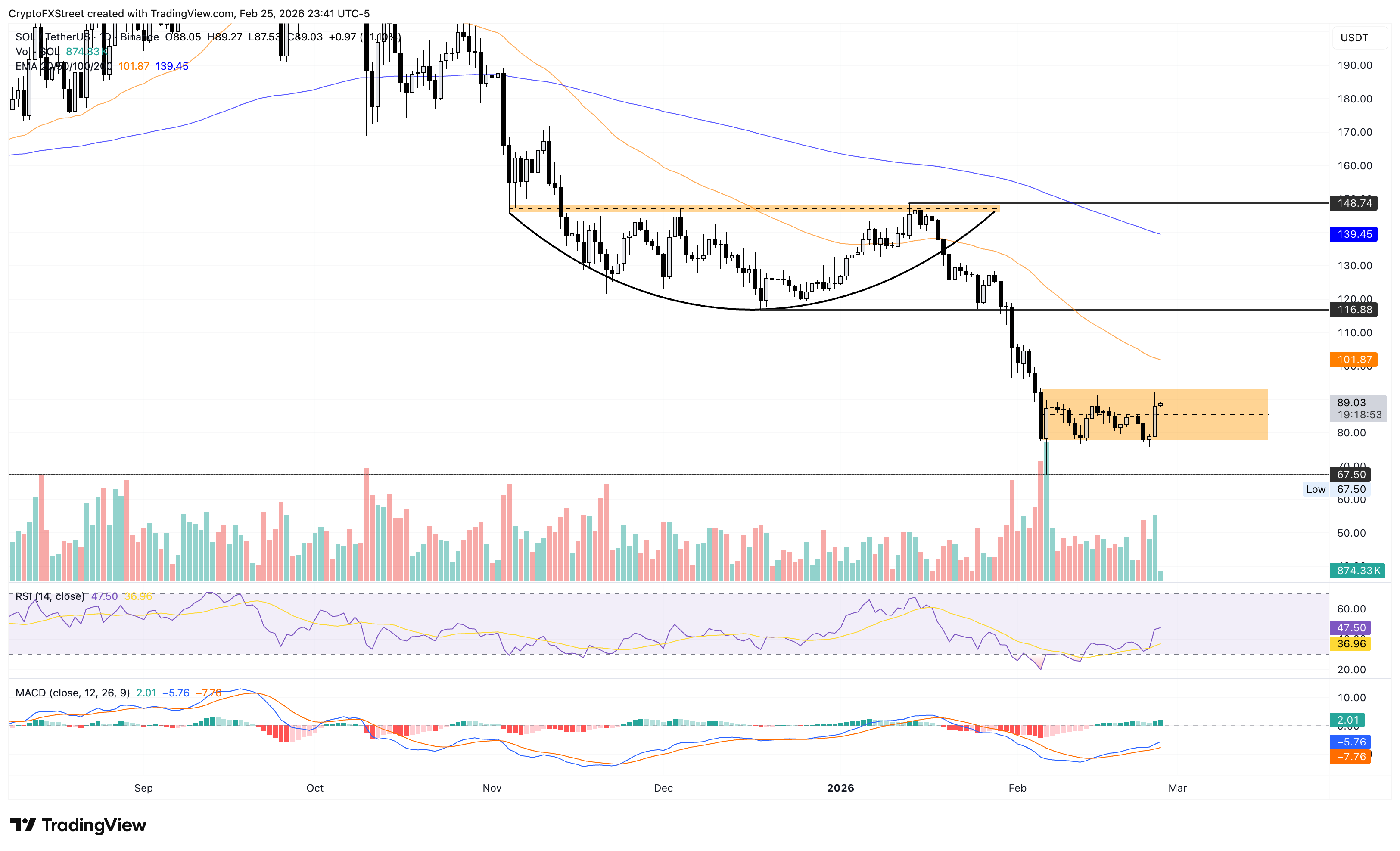 La inclinación a corto plazo es neutral con un leve sesgo alcista a medida que el precio se acerca al nivel de resistencia de 93.43$. Sin embargo, $SOL cotiza por debajo de la media móvil exponencial (EMA) de 50 días, lo que podría limitar la recuperación más amplia.