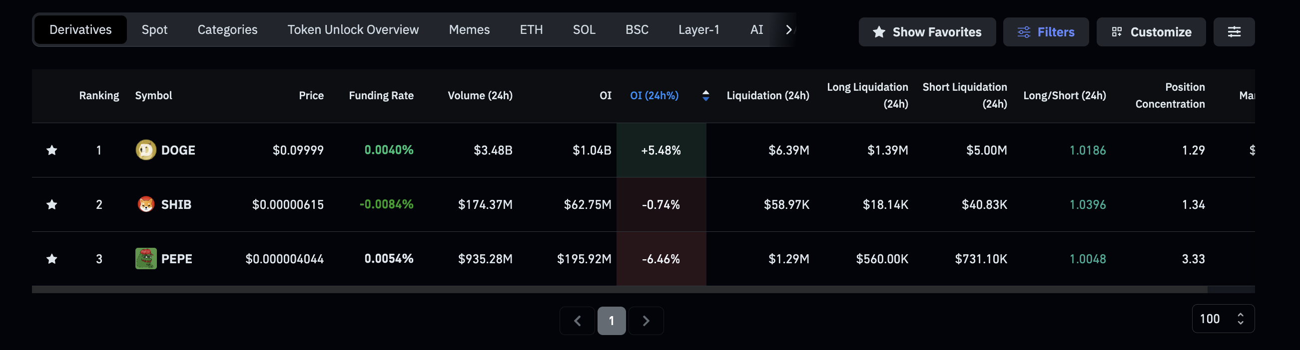 Los datos de derivados reflejan una preferencia por Dogecoin, el líder del mercado, como el líder del segmento según la capitalización de mercado, sobre $SHIB y el equipo de Frog, la moneda meme.