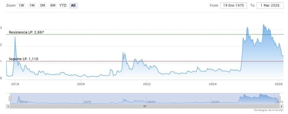El soporte a mediano y largo plazo se encuentra en los 1.11 dólares. Mientras, los indicadores de Ei se muestran mixtos.