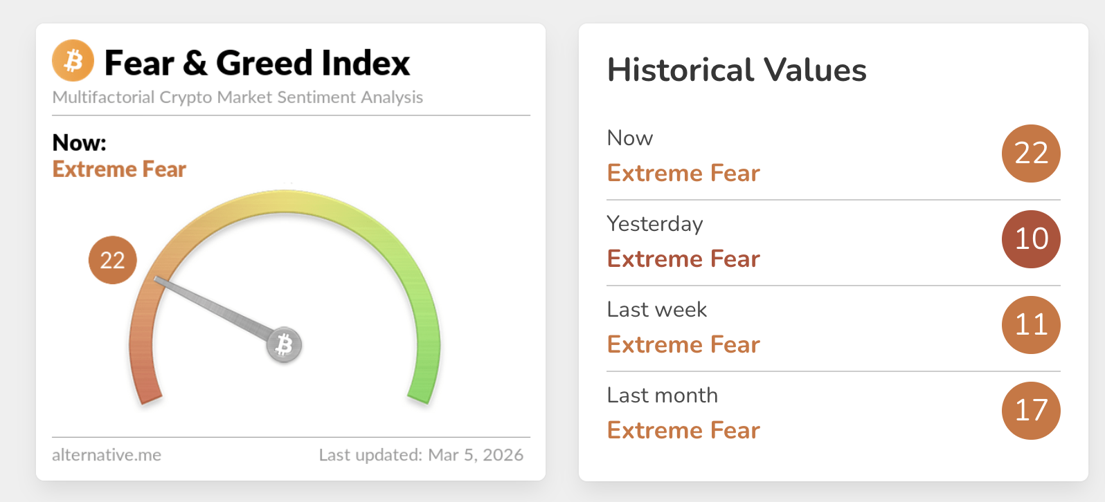 Aunque el sentimiento sigue en un miedo extremo, mejoró a 22 el jueves, desde 10 el día anterior. Un aumento constante en este indicador indica que los inversores están recuperando la confianza en los activos criptográficos a pesar de la guerra.