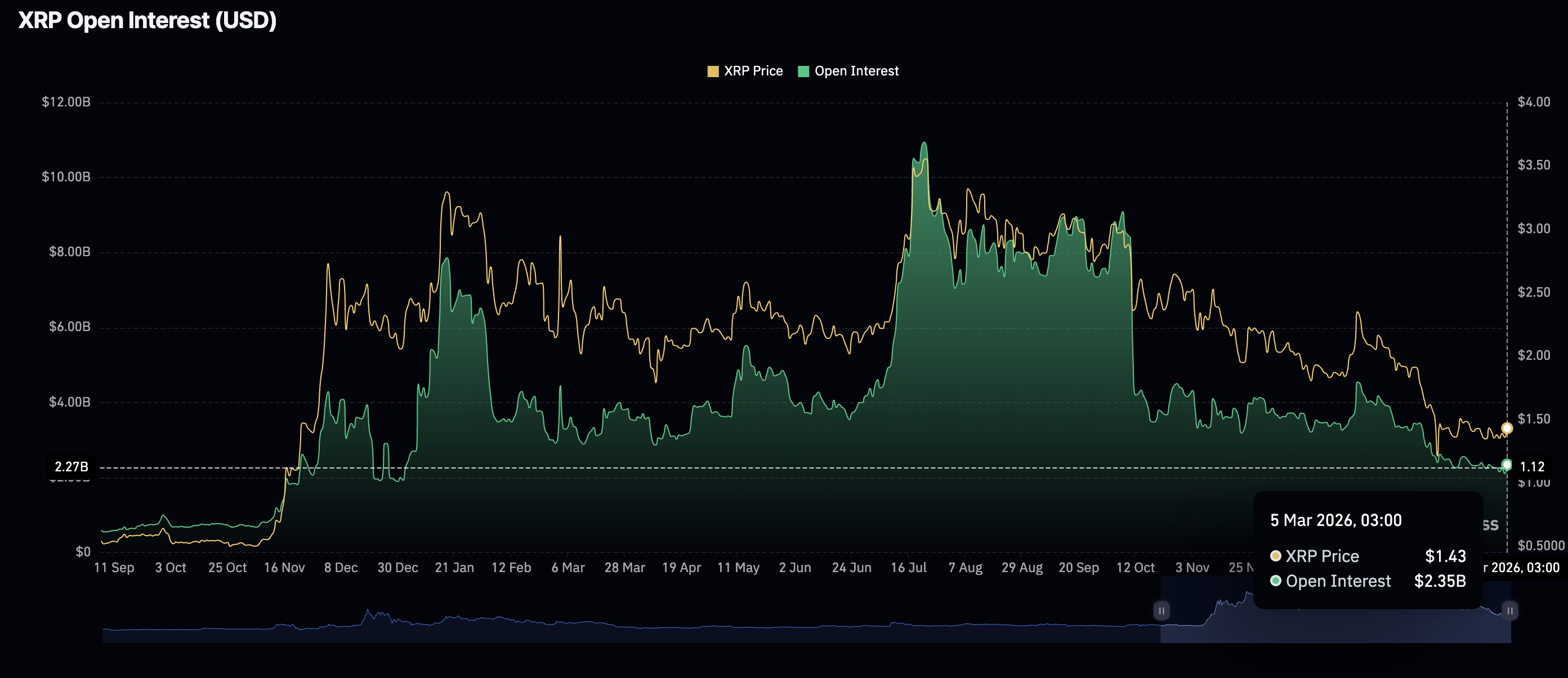 Los inversores minoristas también han mostrado signos de regresar al mercado, como se refleja en el interés abierto de futuros (OI), que ha aumentado a 2.35 mil millones de dólares el jueves desde 2.11 mil millones de dólares el día anterior. Aunque el OI se mantiene significativamente por debajo del récord de 10.94 mil millones de dólares alcanzado en julio, el leve aumento podría ayudar a dar forma a la perspectiva a corto plazo de $XRP si se mantiene.