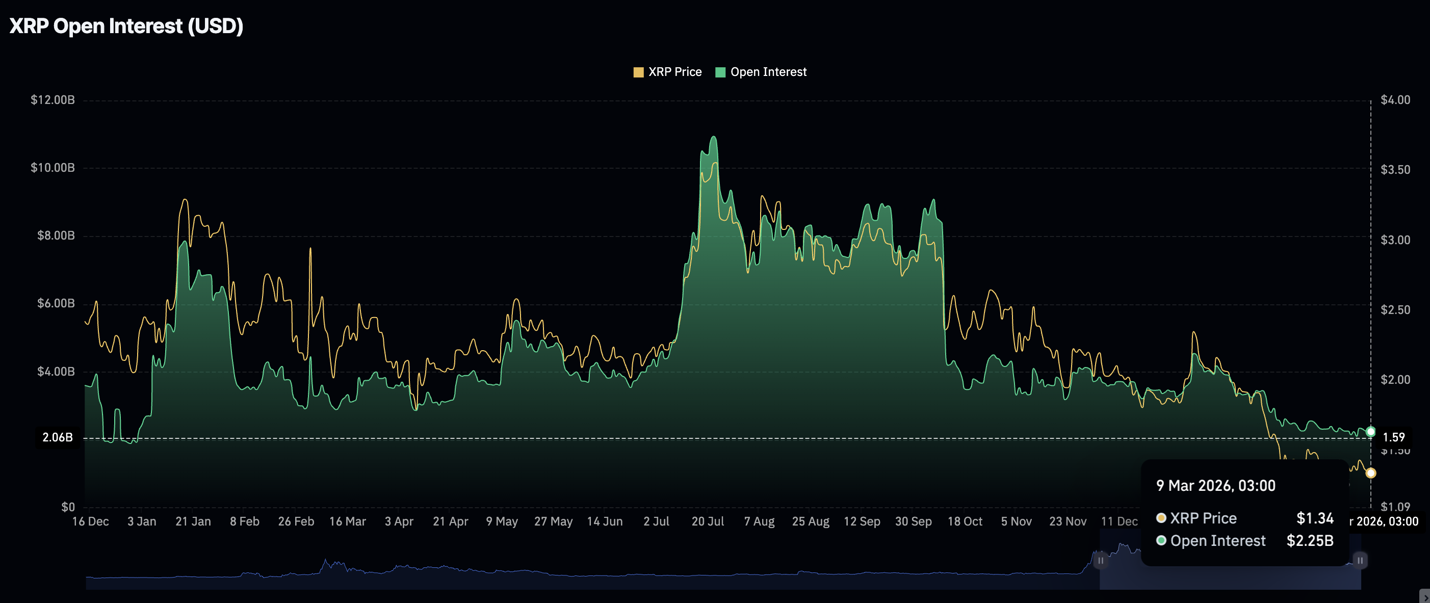 La caída persistente en los precios de $XRP desde el máximo histórico de 3.66$ en julio ha llevado a los inversores minoristas a mantenerse al margen, lo que ha provocado una caída masiva en el interés abierto en futuros (OI), que se mantiene estable en 2.25 mil millones de dólares el lunes.