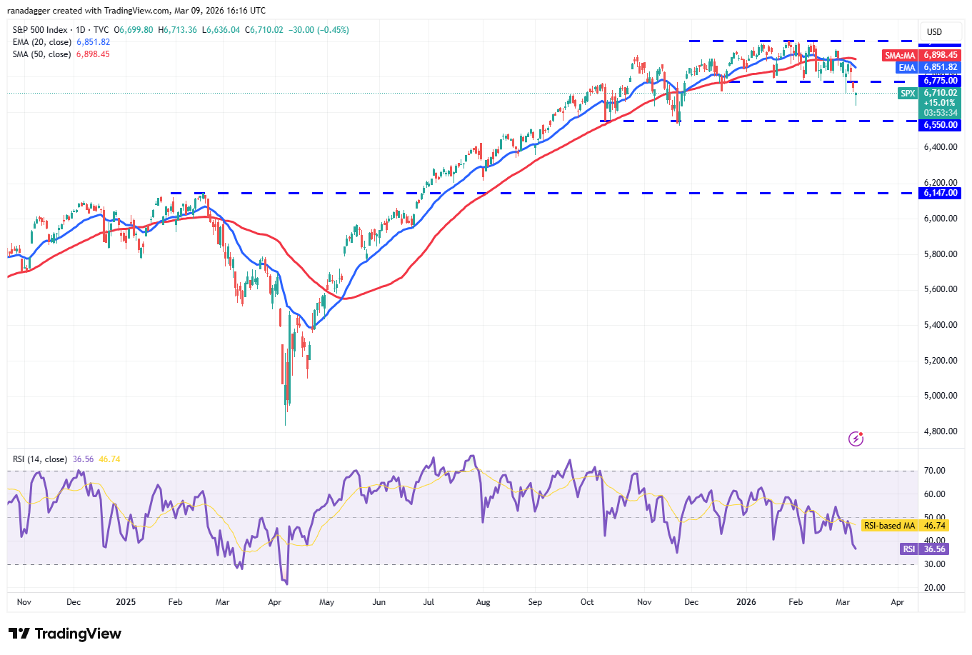 Las medias móviles han completado un cruce bajista, y el índice de fuerza relativa (RSI) ha caído en territorio negativo, lo que indica que el camino de menor resistencia es a la baja. El siguiente soporte crucial a tener en cuenta a la baja es 6.550. Si el nivel se rompe, la corrección podría profundizarse hasta 6.147.