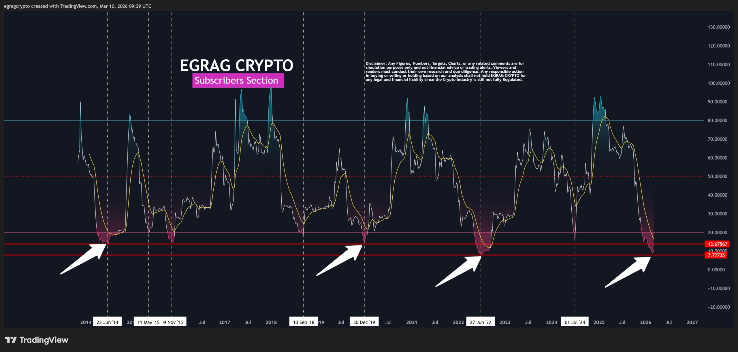 EGRAG señaló que $XRP solo ha alcanzado niveles similares en contadas ocasiones durante la última década. En casos anteriores, como en 2014, 2015, 2018, 2020 y 2022, el activo terminó formando un suelo macro después de entrar en esta zona.