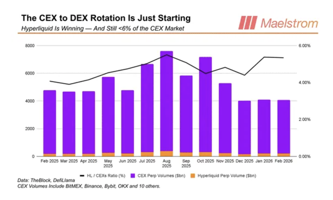 La rotación de CEX a DEX podría impulsar $HYPE hasta cinco veces