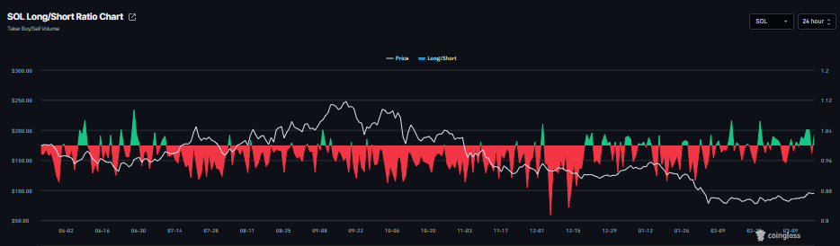 En el lado de los derivados, el ratio largo-corto de CoinGlass para $SOL es de 1,02 el miércoles. Este ratio, al estar por encima de uno, muestra que la mayoría de los operadores están apostando a que el precio del activo suba.