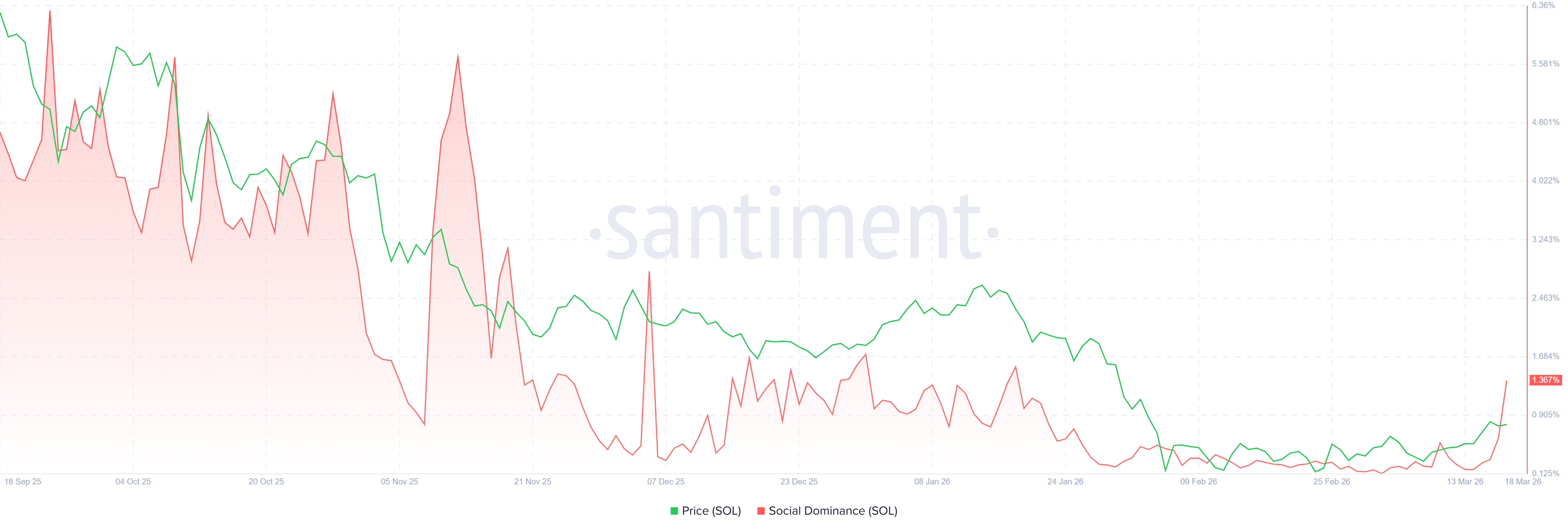 El indicador de Dominancia Social de Santiment para Solana respalda una perspectiva positiva. El índice mide la participación de las discusiones relacionadas con $SOL en los medios de criptomonedas. Ha estado en una tendencia ascendente desde mediados de marzo, alcanzando un 1,36% el miércoles, el nivel más alto desde el 19 de enero. Este aumento indica un creciente interés del mercado y un fortalecimiento del sentimiento entre los inversores de $SOL.