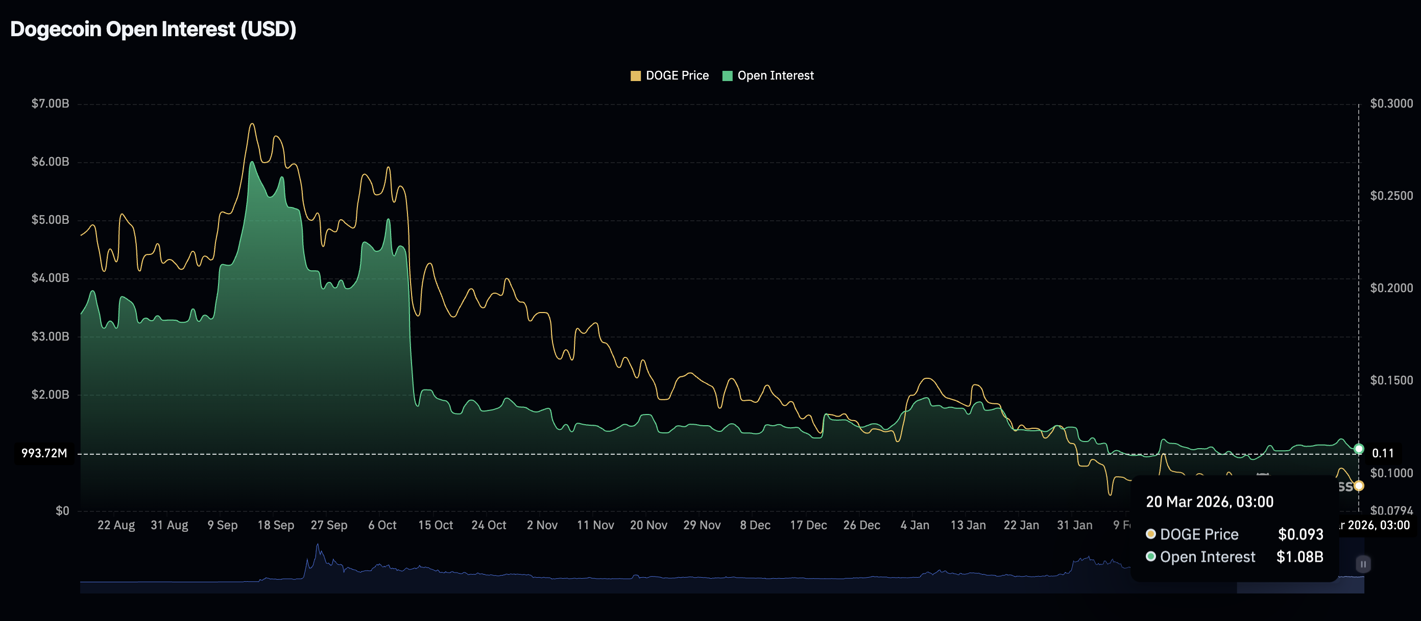 El mercado de derivados de Dogecoin se ha mantenido a la defensiva mientras los comerciantes minoristas reducen su exposición en medio de la volatilidad y la incertidumbre macroeconómica. El interés abierto (OI) en futuros, que refleja el valor nocional de los contratos de futuros pendientes, promedia 1.080 millones de dólares el viernes.