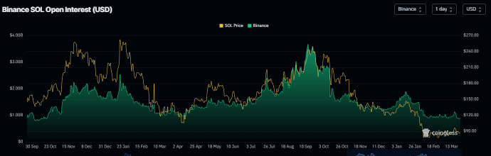 En el lado de los derivados, los datos respaldan una perspectiva bajista para Solana. El interés abierto (OI) de los futuros de $SOL en el exchange Binance cayó a 871.40 millones de dólares el lunes y ha estado disminuyendo continuamente desde mediados de enero. Esta caída en el OI refleja una disminución en la participación de los inversores y proyecta una perspectiva bajista.