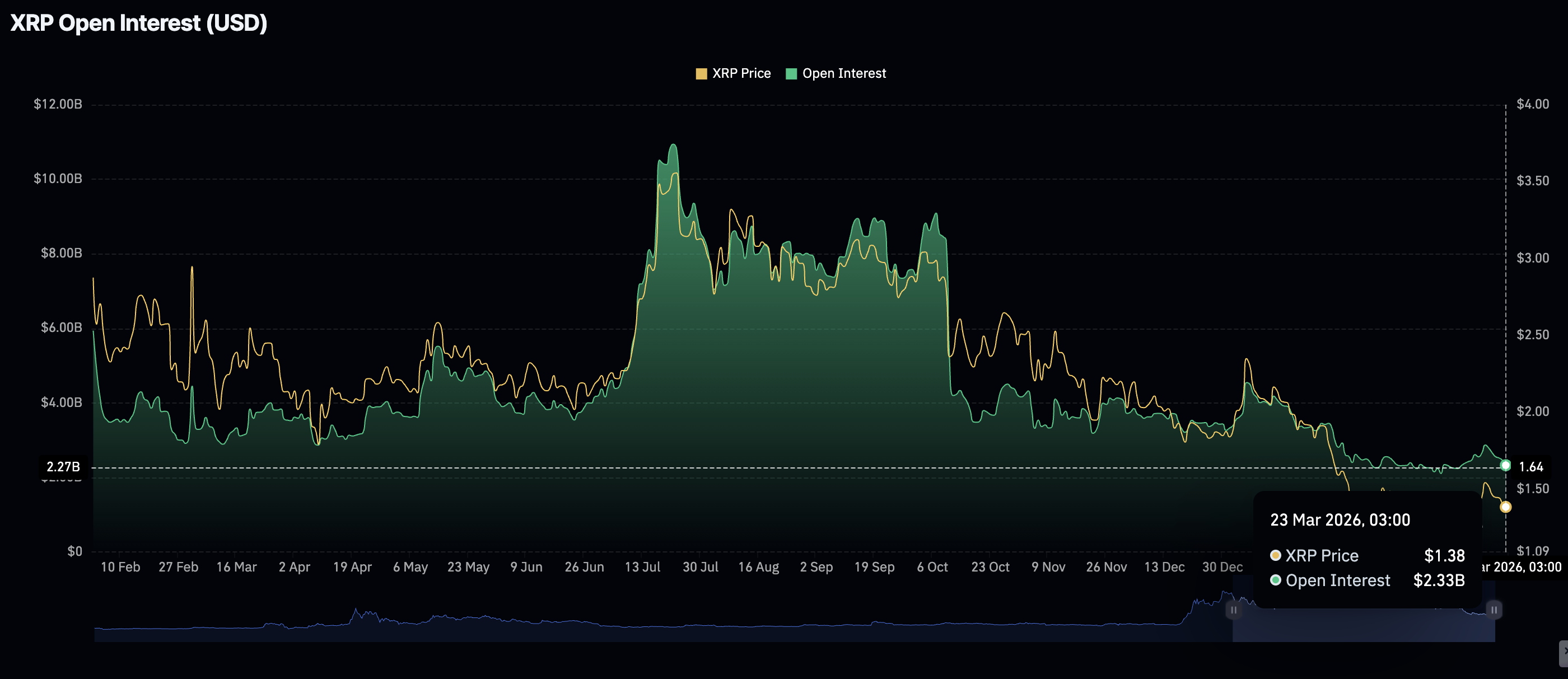 El interés minorista en $XRP también se debilitó, como lo evidencia la caída pronunciada del interés abierto en futuros a 2.330 millones de dólares el lunes, desde 2.470 millones el día anterior y el máximo de la semana pasada de 2.870 millones de dólares. El mercado de derivados de $XRP se ha debilitado persistentemente desde el récord máximo de interés abierto de 10.940 millones de dólares en julio.