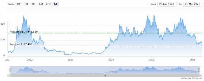 Esto genera un problema. Si la demanda al contado no se recupera durante abril, estos tenedores podrían optar por vender con una pérdida menor en lugar de seguir soportando la caída. Una nueva oleada de ventas por parte de este grupo podría acelerar el movimiento hacia el objetivo de 73 dólares.