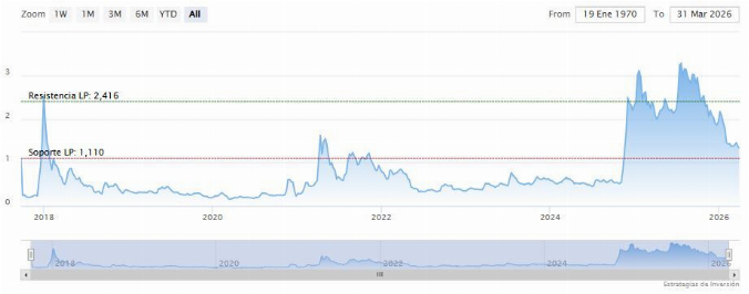 A partir de ahí, recuperar los 2 dólares se vuelve más realista y, eventualmente, la atención se centra de nuevo en los máximos anteriores. Pero estos movimientos dependen en gran medida de que mejoren las condiciones generales.