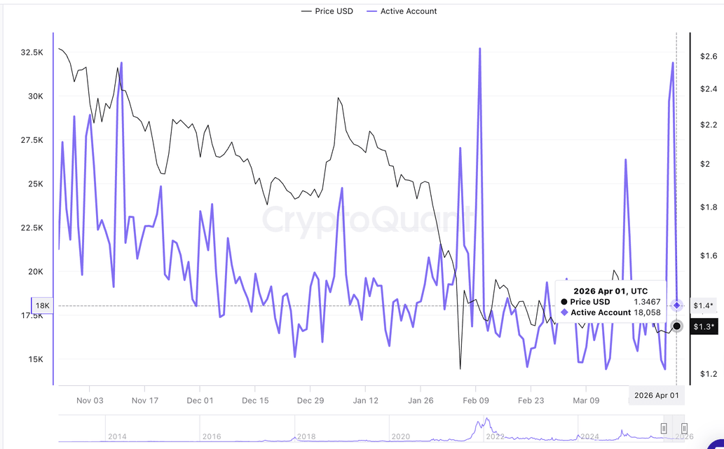 El número de direcciones activas que realizan transacciones en el $XRP Ledger (XRPL) cayó casi un 42% a alrededor de 18.000 el miércoles, desde casi 32.000 el martes, lo que sugiere una actividad volátil en medio de la guerra en Oriente Medio, que ha continuado presionando los activos de riesgo.