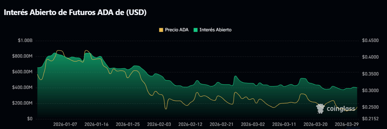 El comportamiento del interés abierto en Cardano refleja mucho más que una simple corrección: acompaña una pérdida clara de protagonismo en el mercado.