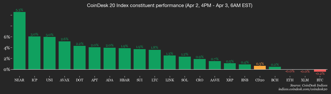 - CoinDesk 20 sube 0.26% a 1,902.32 (24 hrs: +0.80%)