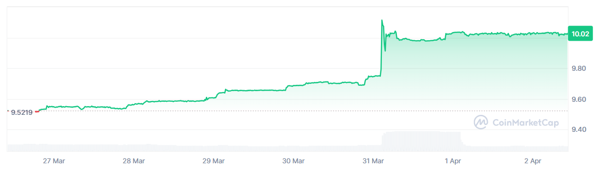 Al superar la barrera de los $10 por moneda, el token no solamente se acerca de nuevo a sus máximos históricos alcanzados hace un par de días. Además de ello, desplaza a Hyperliquid (HYPE) del décimo puesto del ranking de CoinMarketCap.