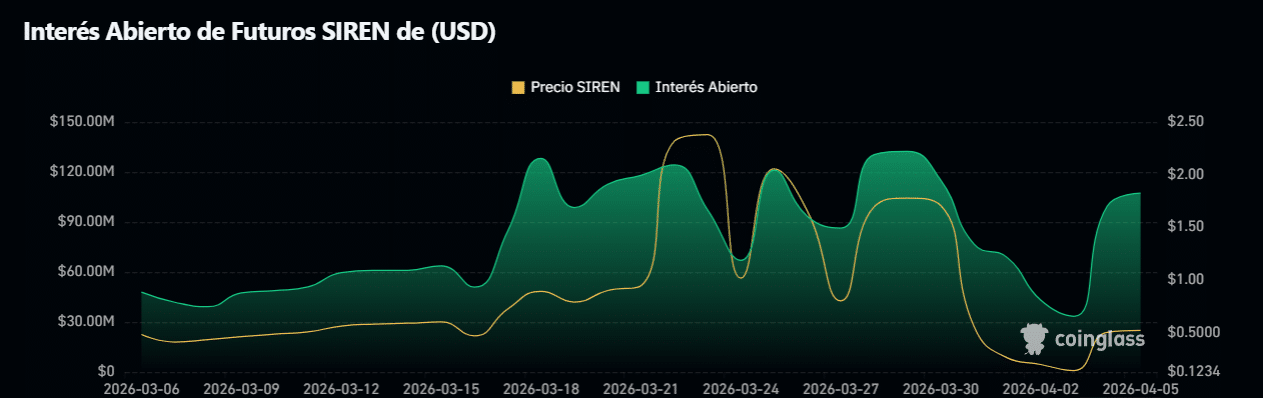 El gráfico de interés abierto de $SIREN refleja un mercado altamente volátil, lo que sugiere una dinámica dominada por capital especulativo y una baja participación orgánica.
