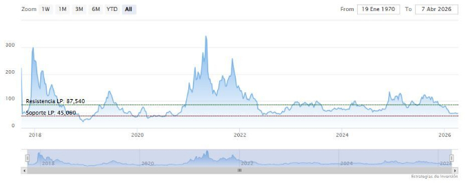 La resistencia a mediano plazo se encuentra en los 61.32 dólares. Mientras, los indicadores de Ei se muestran mixtos.