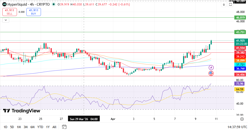 Recientemente, la tesorería de Hyperliquid compró 45.000 $HYPE por $1.8 millones, a un precio promedio de $39,7, como parte de su programa de recompra. El 7 de abril de 2026, el fondo ya había realizado compras similares (por ejemplo, 39.000 $HYPE por $1.4 millones) y ha continuado acumulando.