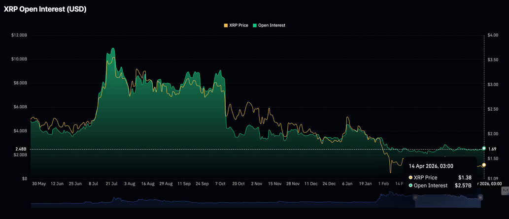 $XRP también está experimentando una leve afluencia de capital minorista, ya que el interés abierto (OI) en futuros sube a 2.57 mil millones de dólares el martes, desde 2.38 mil millones de dólares el día anterior.