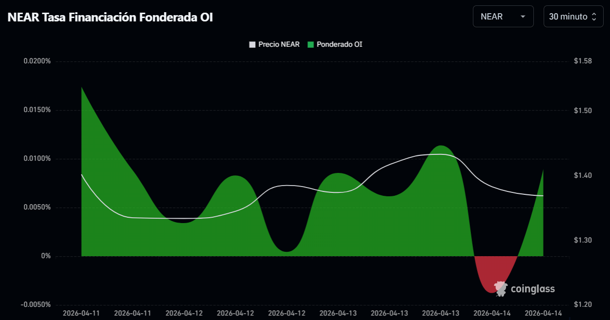 El gráfico de funding rates de $NEAR muestra un giro relevante tras la caída del precio hacia la zona de soporte en $1,36. En ese nivel, ha comenzado a disminuir la presión de venta sobre el activo, en línea con un cambio en el posicionamiento de derivados.